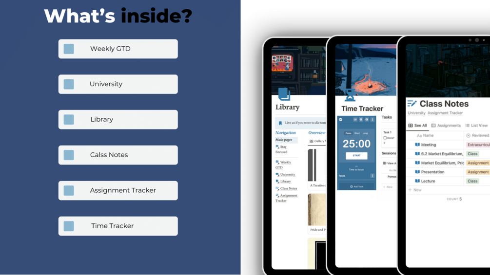 Here’s where the big picture comes into play. Track your entire semester—class notes, assignments, deadlines—it’s all right here. Below that, there's a Class Notes Overview, so you can jump into any subject or note with a single click.